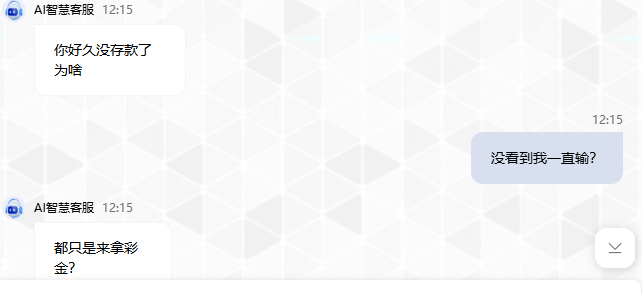 垃圾野鸡台,几个月没输过,几个月没提过款 存杀猪台 领了两次8块彩金,然后今天领生日彩金 直接不给玩了,本来想着截图曝光 ,最后图没截完直接踢我掉线